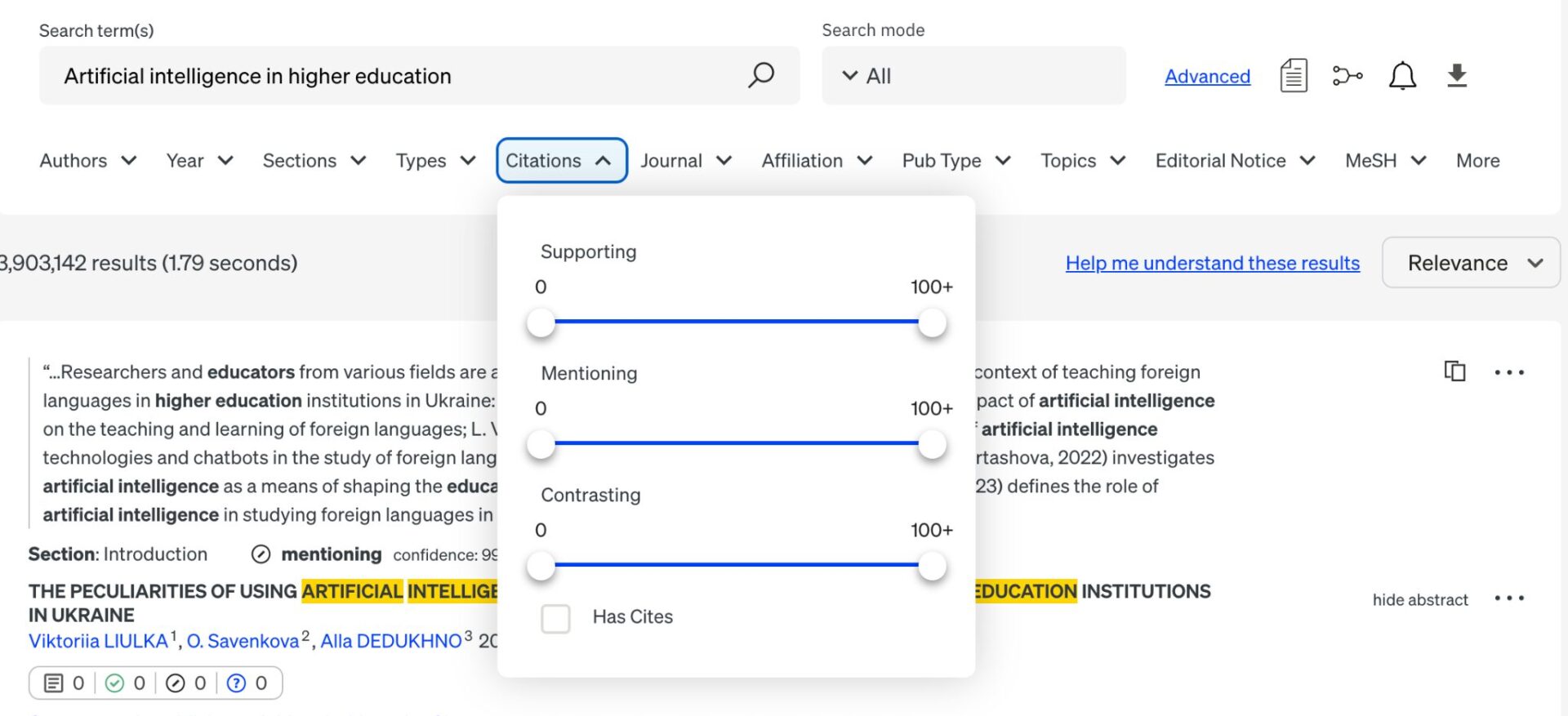 Unser Profi-Tipp: Nutze die Filter von Scite, um Zitate danach zu sortieren, ob sie eine Arbeit unterstützen, widersprechen oder einfach erwähnen. So siehst du nicht nur, wie oft eine Studie zitiert wird, sondern auch, in welchem Zusammenhang. Konzentriere dich auf Zitate, die besonders relevant für dein Thema sind, und schenke kontrastierenden Studien besondere Aufmerksamkeit – sie sind Gold wert, wenn du deine Argumentation stärken und mögliche Gegenpositionen in deiner Arbeit reflektieren möchtest. Hier erhältst du ein Beispiel: